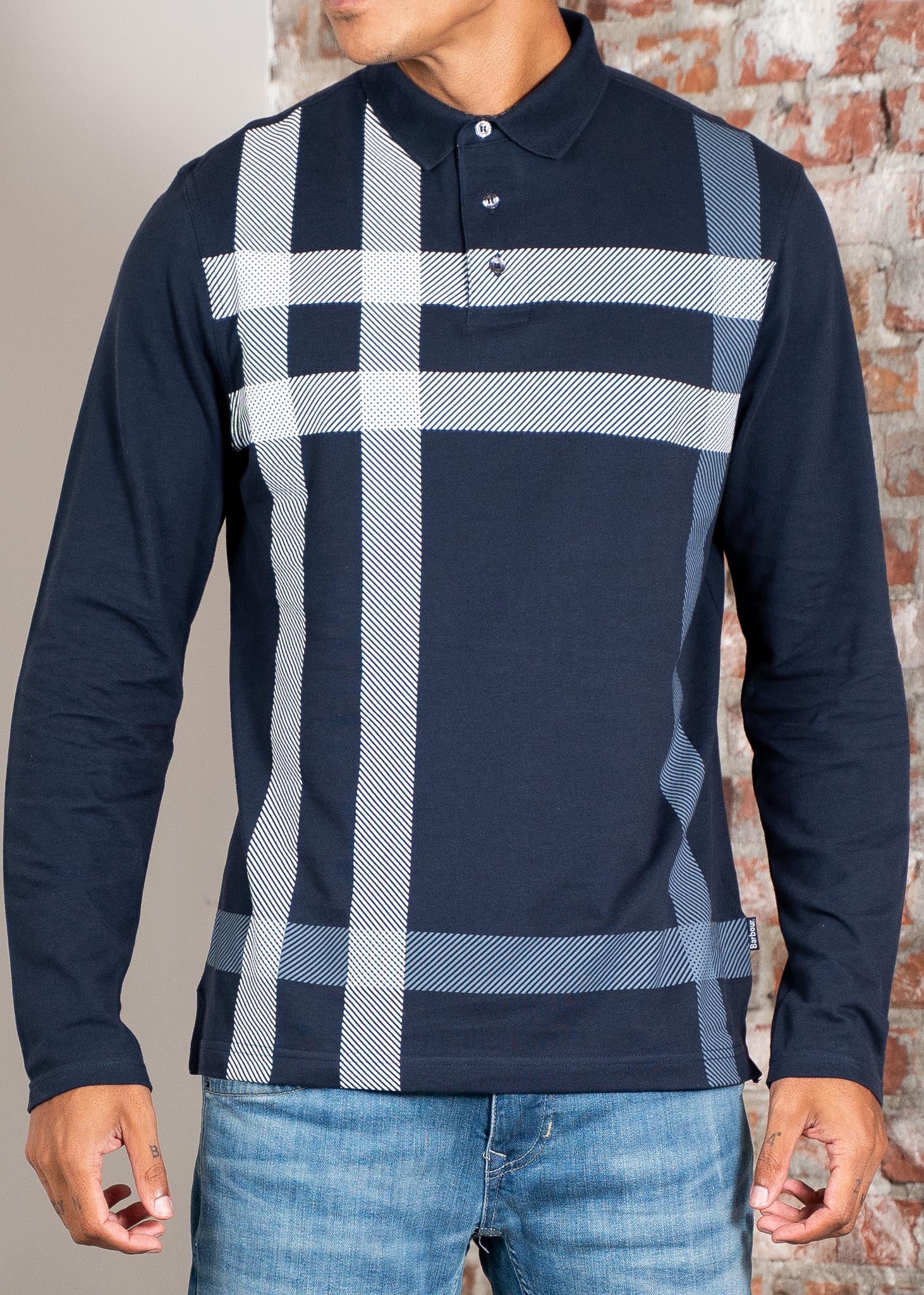 Das Barbour Blain Tartan Langarm-Polo ist ein auffälliges Kleidungsstück für legere Anlässe. Es besticht durch ein übergroßes Tartan-Muster, eine Zwei-Knopf-Leiste und gerippte Details an Kragen und Manschetten. Dezente Barbour-Tartan-Akzente an Kragen und Leiste runden das Design ab.