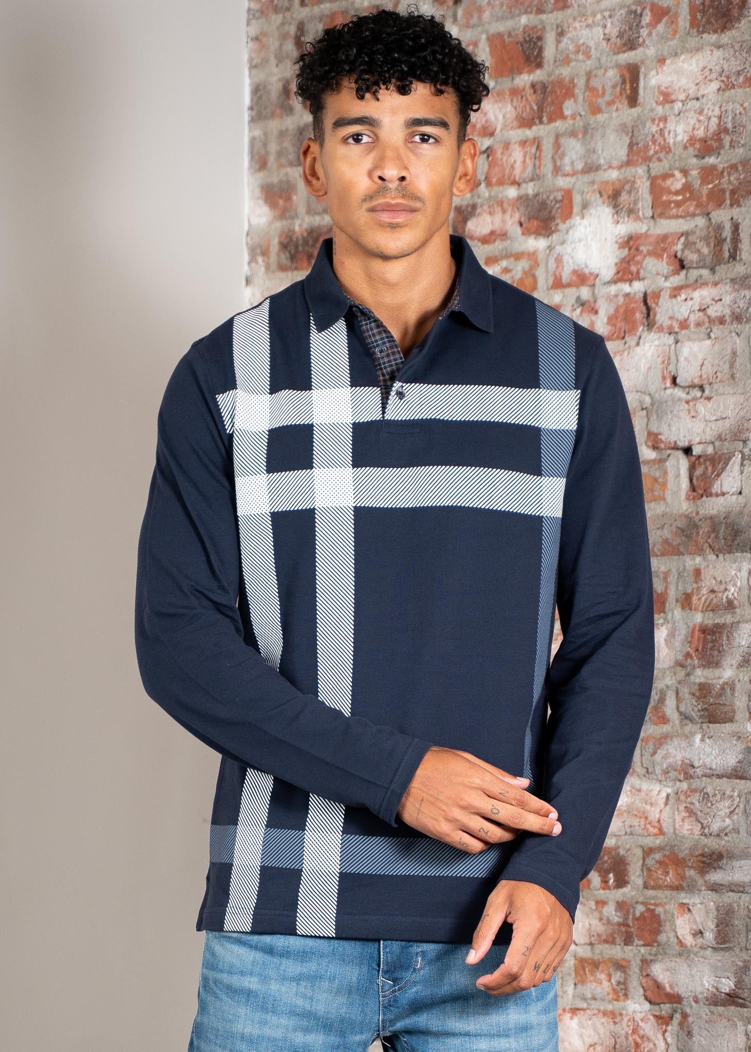 Blaine tailored ls polo shirt - navy