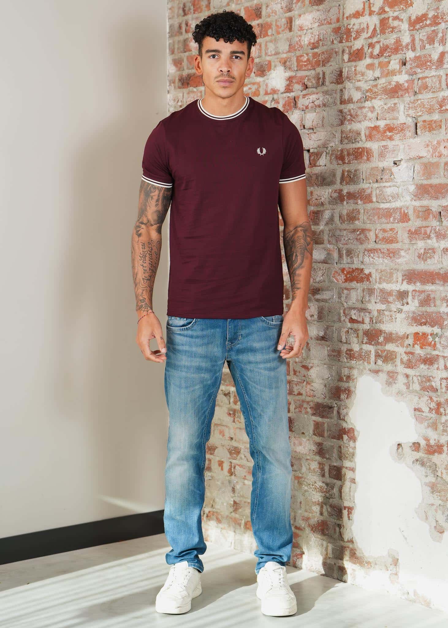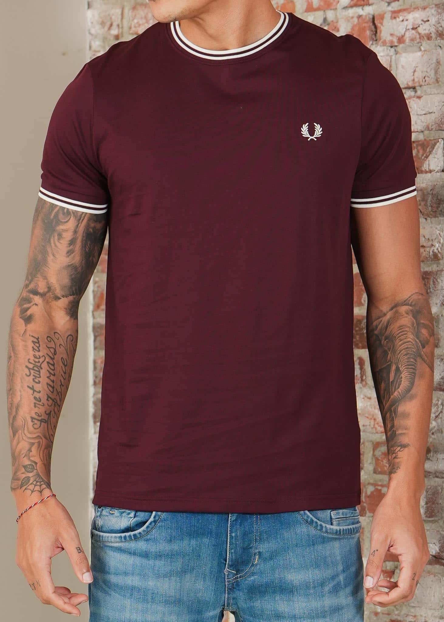 Twin tipped t-shirt - oxblood ecru
