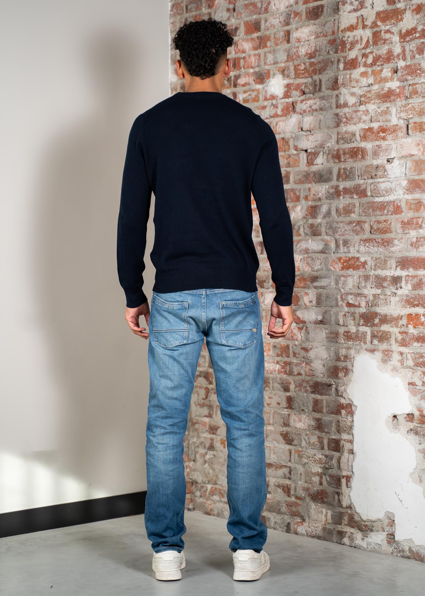 Cotton merino crew neck jumper - dark navy