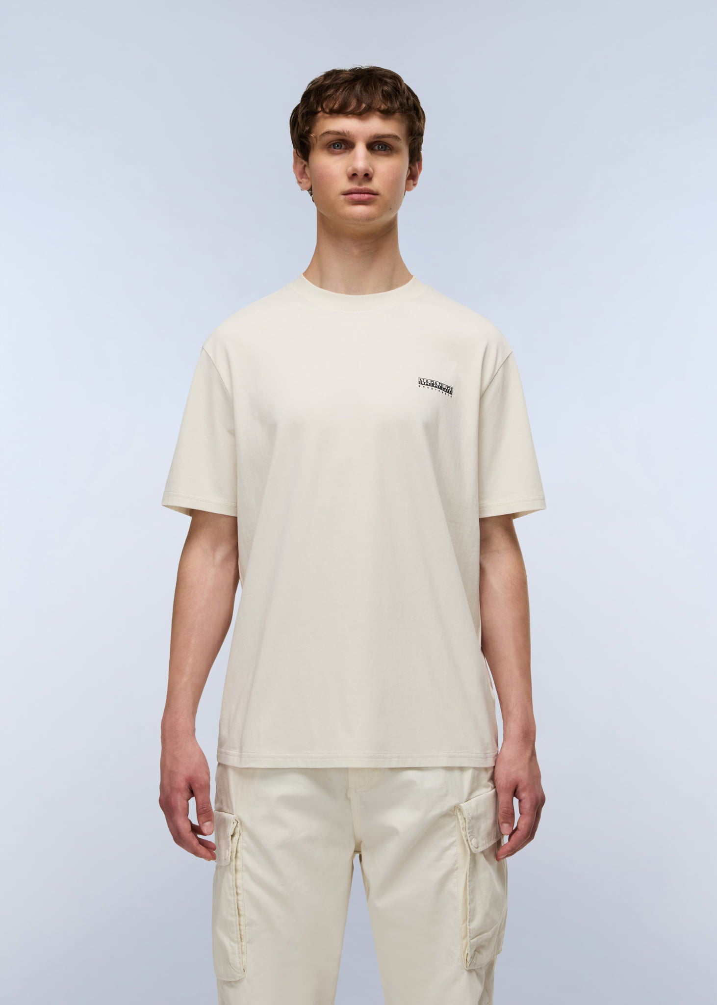 Basic t shirt met subtiel borstlogo. Zacht katoen en een tijdloze pasvorm voor dagelijks gebruik.