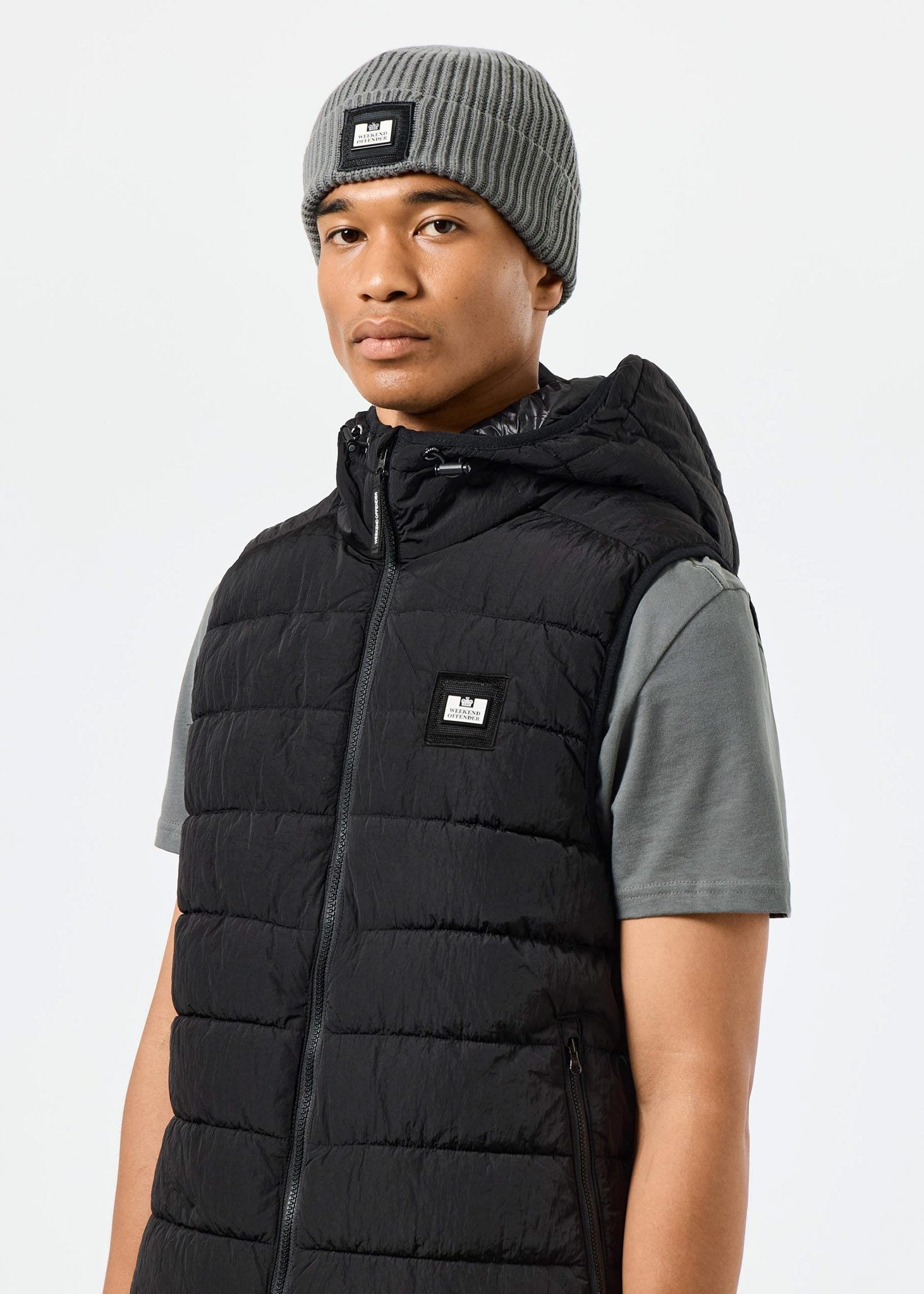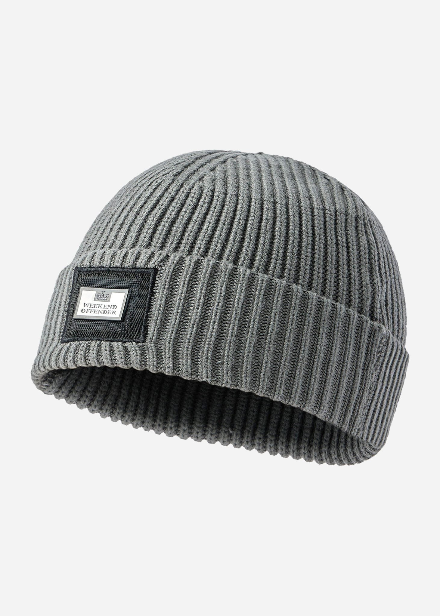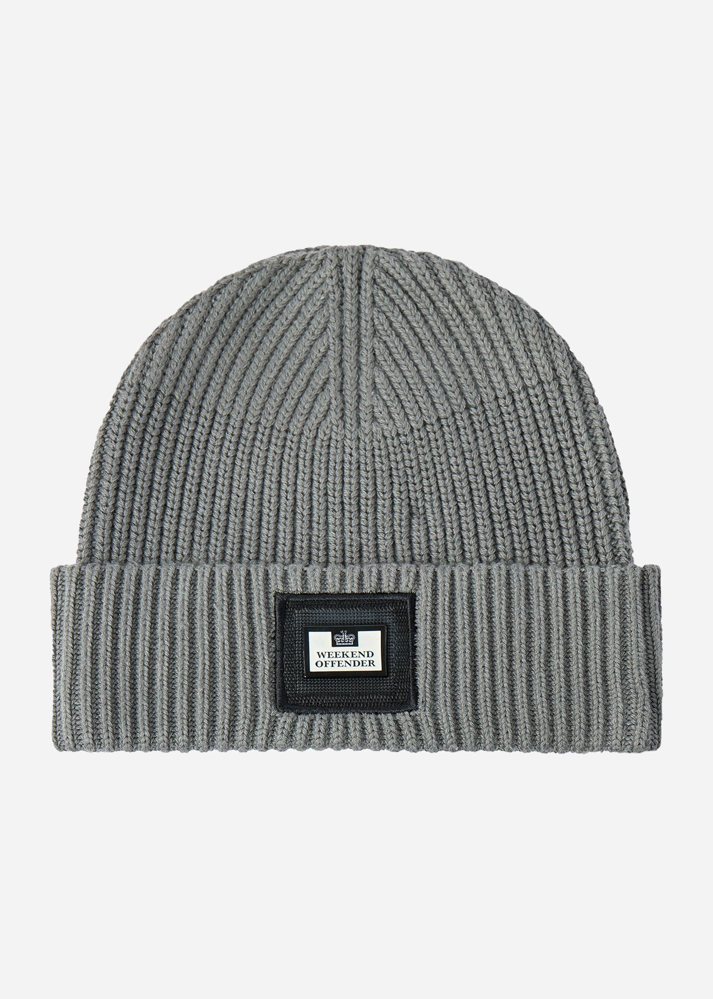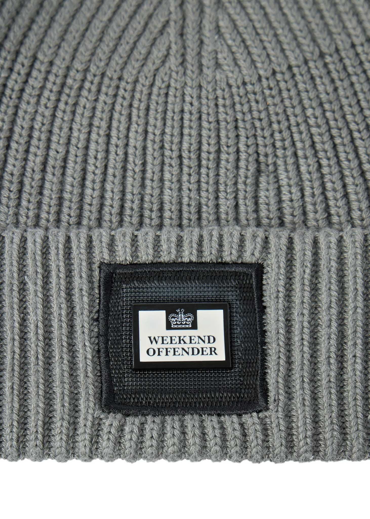 Beanie aus 100 % Baumwolle, gestrickt in robustem Jersey-Muster für extra Wärme und Komfort. Diese Beanie hat einen gefalteten Rippensaum und ist mit einem Weekend Offender-Abzeichen für einen erkennbaren Look versehen.